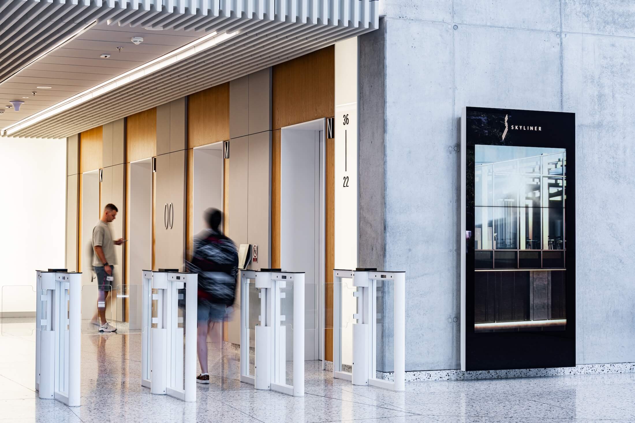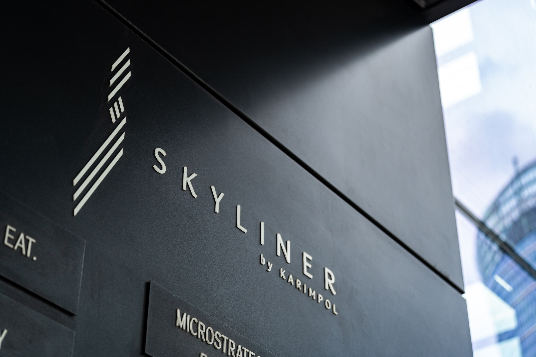 Skyliner to budynek, w którym ADVERTIS miało okazję zrealizować także inne istotne elementy – od monumentalnego logo na ścianie w lobby, które stało się wizytówką przestrzeni, po spójny system wayfindingu obejmujący cały obiekt, od parkingu aż po najwyższe piętra.