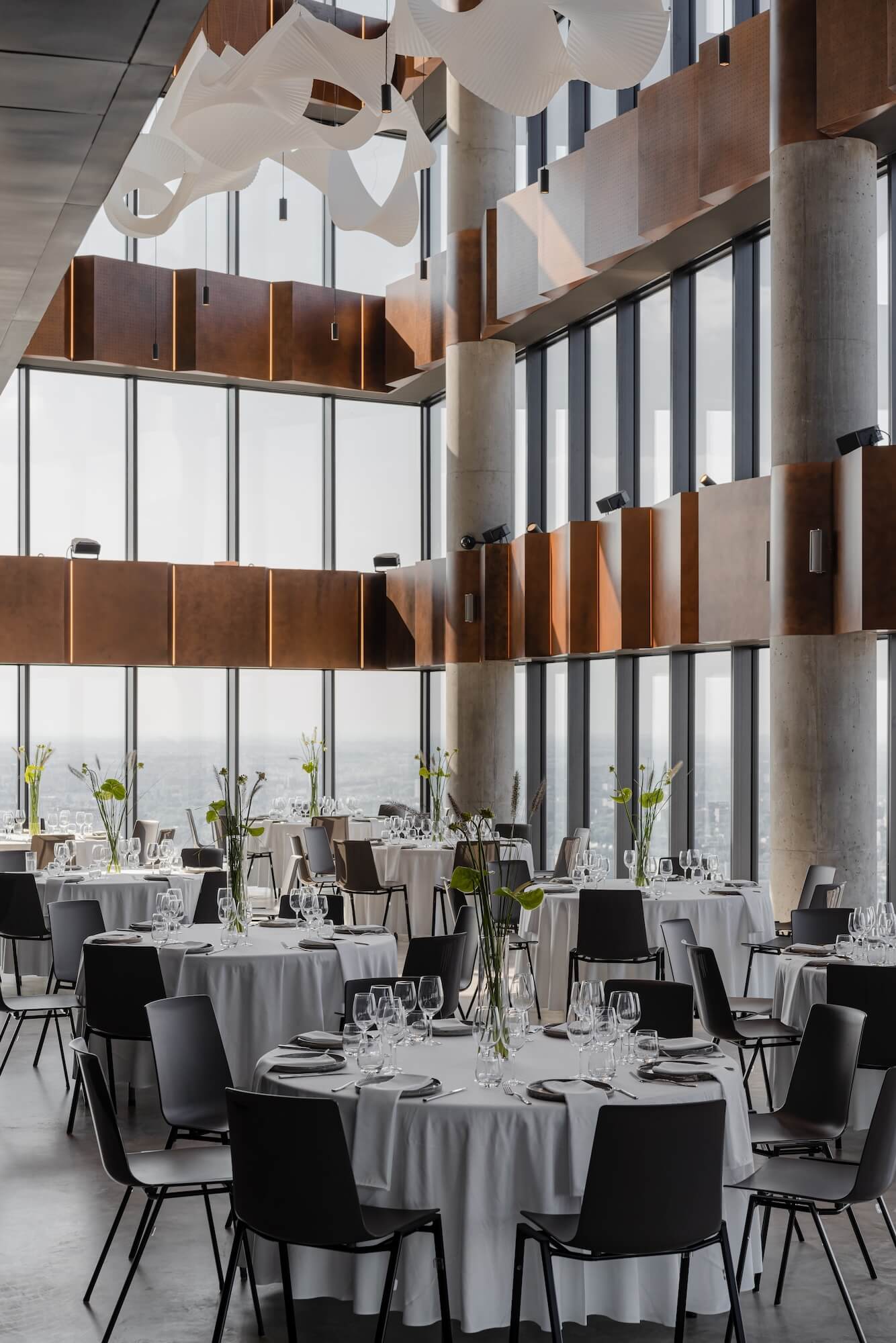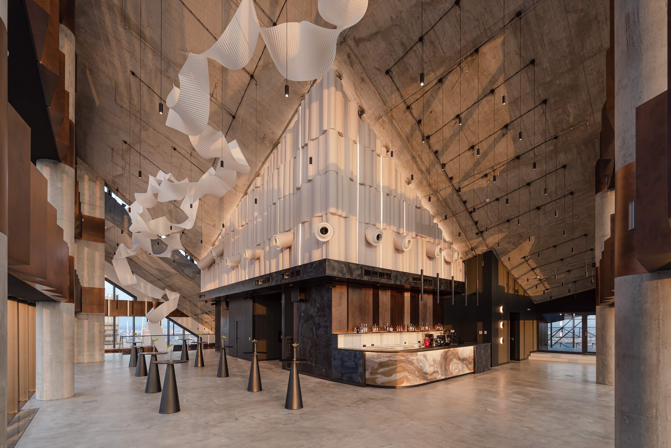 Case study: Przestrzeń eventowa LookUp | Miedziane panele na tle panoramy Warszawy